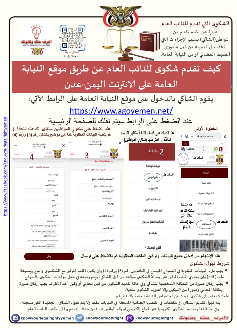الشكاوي (تعليمات ادخال الشكوى لموقع النائب العام)