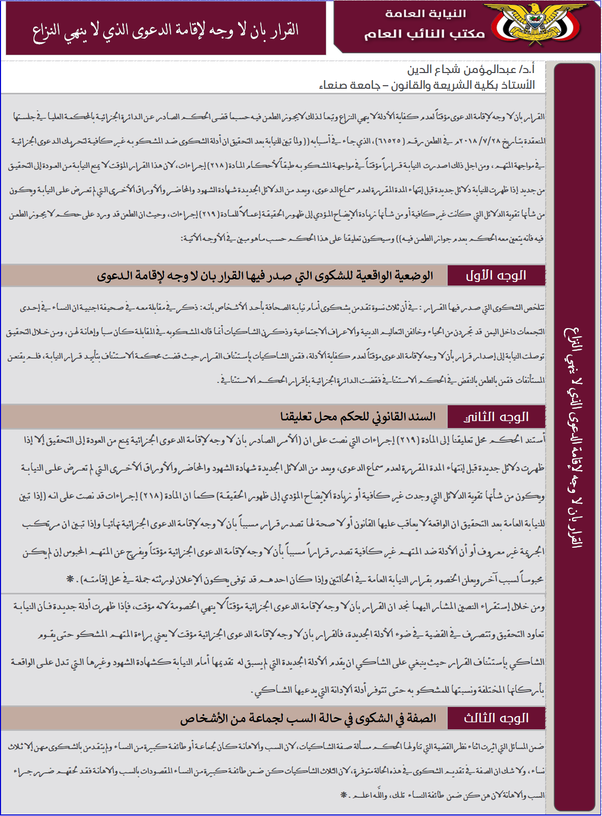 القرار بان لا وجه لإقامة الدعوى الذي لا ينهي النزاع